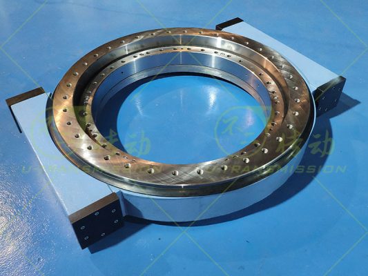 WE-III-O-32精密重載銅渦輪雙蝸桿全防護(hù)蝸輪蝸桿式回轉(zhuǎn)驅(qū)動(dòng),客戶使用在精密轉(zhuǎn)臺(tái)領(lǐng)域,要求精度高,轉(zhuǎn)速快,穩(wěn)定可靠。根據(jù)客戶要求,不二傳動(dòng)為客戶設(shè)計(jì)了這一款重載銅渦輪雙蝸桿全防護(hù)蝸輪蝸桿式回轉(zhuǎn)驅(qū)動(dòng),回轉(zhuǎn)驅(qū)動(dòng)采用精密回轉(zhuǎn)支承鑲嵌鋁青銅ZCuAl9Fe4Ni4Mn2的方式,既保證回轉(zhuǎn)驅(qū)動(dòng)的承載能力,又保證了回轉(zhuǎn)驅(qū)動(dòng)轉(zhuǎn)速快,穩(wěn)定可靠。