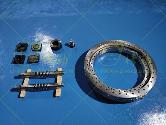 安裝、調(diào)試、檢測(cè)、加注潤(rùn)滑脂、進(jìn)行靈活性實(shí)驗(yàn)、包裝發(fā)貨,一氣呵成,一個(gè)滿足客戶要求的產(chǎn)品在不二傳動(dòng)團(tuán)隊(duì)的努力下順利發(fā)貨。值得一提的是我們?cè)谧鲮`活性實(shí)驗(yàn)時(shí)發(fā)現(xiàn),雙蝸桿精密型的回轉(zhuǎn)驅(qū)動(dòng)非常容易實(shí)現(xiàn)兩根蝸桿的同步,這意味著客戶完全可以使用兩個(gè)液壓馬達(dá)或者兩個(gè)伺服電機(jī)分別驅(qū)動(dòng)兩根蝸桿,可以輕松實(shí)現(xiàn)雙蝸桿回轉(zhuǎn)驅(qū)動(dòng)靈活旋轉(zhuǎn)。