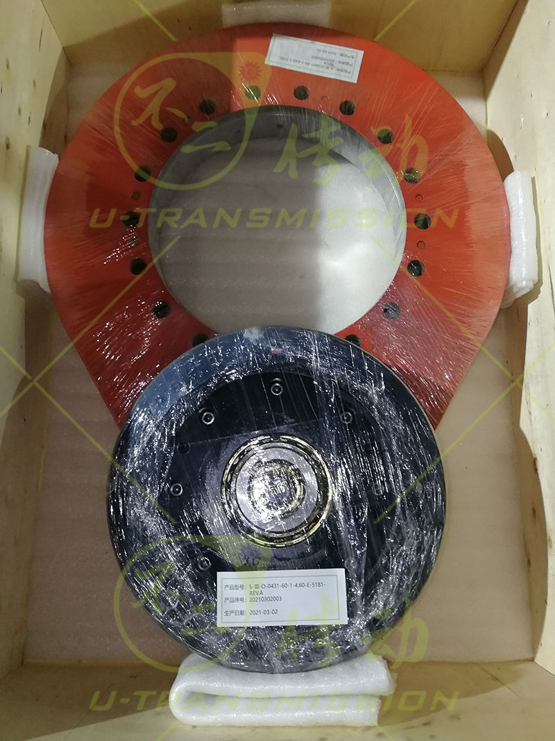 S-III-O-0431三系列重載外齒全防護特殊法蘭齒輪式回轉驅動,客戶用在工業(yè)往復運動領域,直齒式回轉驅動豎直安裝使用,受安裝空間限制直齒驅動的直徑不能太大,這一制約因素限定了直齒驅動的減速比不能做大,但是輸出扭矩要求又很高,這種情況下只能選用很大的電機來滿足總輸出扭矩,最終設計的適配法蘭非常大,法蘭過大干涉內圈固定螺栓的安裝,為此不二傳動的設計團隊為客戶設計了一個特殊的高大的適配法蘭,配合合理的安裝步驟,完全解決了客戶的問題,大扭矩輸入,適配法蘭也同樣做了特殊設計,確保穩(wěn)定,可靠。