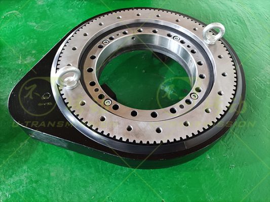S-I-O-0315齒輪式回轉驅(qū)動水平安裝使用,產(chǎn)品應用在汽車吊旋轉臂上。