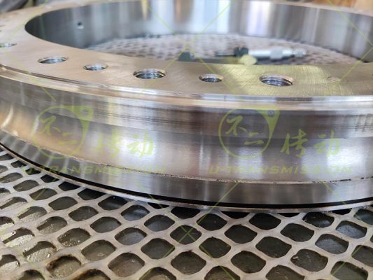 W25開(kāi)式蝸輪蝸桿回轉(zhuǎn)驅(qū)動(dòng)使用在自動(dòng)化設(shè)備上,客戶(hù)水平方向安裝空間受限,需要限制回轉(zhuǎn)驅(qū)動(dòng)的外徑尺寸,需要大輸出扭矩和大的減速比,根據(jù)客戶(hù)需求,不二傳動(dòng)為客戶(hù)設(shè)計(jì)了25寸開(kāi)式蝸輪蝸桿驅(qū)動(dòng),為了客戶(hù)可以順利安裝通過(guò)舍棄圍欄,齒修頂來(lái)減小回轉(zhuǎn)驅(qū)動(dòng)的外徑,驅(qū)動(dòng)輸入端按照客戶(hù)減速電機(jī)接口尺寸設(shè)計(jì)適配法蘭,客戶(hù)可以直接連接使用,非輸入端設(shè)計(jì)可以手動(dòng)的六角頭,方便客戶(hù)在安裝調(diào)試或者緊急狀況下可以手動(dòng)旋轉(zhuǎn)驅(qū)動(dòng)。