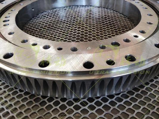 回轉(zhuǎn)驅(qū)動(dòng)殼體使用加工中心加工而成,保證配合尺寸精準(zhǔn),合理的工藝安排保證蝸桿軸向竄動(dòng)量滿(mǎn)足設(shè)計(jì)要求,回轉(zhuǎn)支承采用小游隙高精度,保證回轉(zhuǎn)支承的端跳徑跳,嚴(yán)格控制齒精度,確保最終裝配出較高精度的回轉(zhuǎn)驅(qū)動(dòng)。