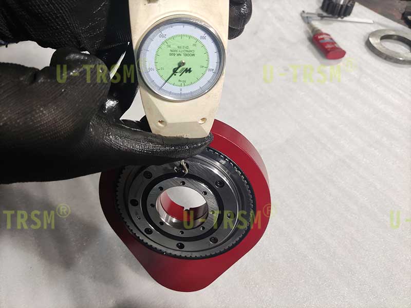 RU85精密交叉滾子外齒回轉(zhuǎn)驅(qū)動(dòng)使用在自動(dòng)化設(shè)備上,客戶使用載荷小,轉(zhuǎn)速低,安裝空間有限,驅(qū)動(dòng)重量要求5Kg,驅(qū)動(dòng)跳動(dòng)要求嚴(yán)格,需要負(fù)游隙。根據(jù)客戶的要求,不二傳動(dòng)為客戶設(shè)計(jì)了這款精密回轉(zhuǎn)驅(qū)動(dòng)。