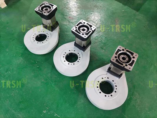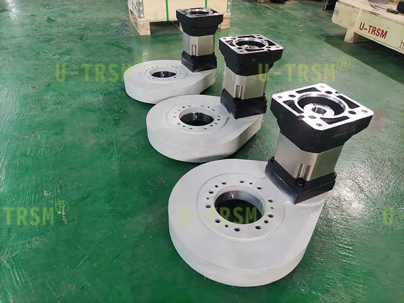 客戶需要我們配套合適的減速機,根據(jù)使用工況,我們選擇了輸出扭矩和減速比都適合的行星減速機,并且對減速機和回轉(zhuǎn)驅(qū)動做了適配設計。發(fā)貨前我們?yōu)榭蛻舭惭b好行星減速機,客戶收到貨,直接連接伺服電機回轉(zhuǎn)單元就可以旋轉(zhuǎn)使用了,非常的方便。