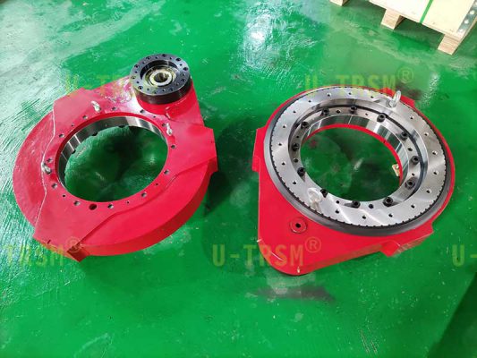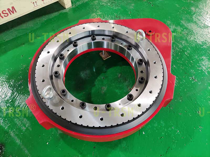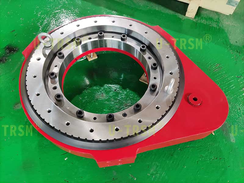 S-III-O-0510 豎直支撐齒輪式回轉(zhuǎn)驅(qū)動(dòng)使用在工業(yè)自動(dòng)化領(lǐng)域,水平安裝使用,但是固定回轉(zhuǎn)驅(qū)動(dòng)的螺栓不能在回轉(zhuǎn)驅(qū)動(dòng)底部,只能在回轉(zhuǎn)驅(qū)動(dòng)側(cè)面,客戶通過殼體側(cè)面的螺栓孔固定回轉(zhuǎn)驅(qū)動(dòng),回轉(zhuǎn)驅(qū)動(dòng)外圈帶動(dòng)設(shè)備的旋轉(zhuǎn)部分旋轉(zhuǎn)。使用環(huán)境多粉塵,要求回轉(zhuǎn)驅(qū)動(dòng)具有防塵性能。