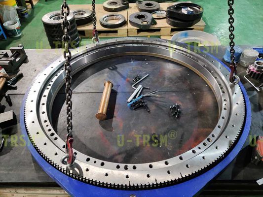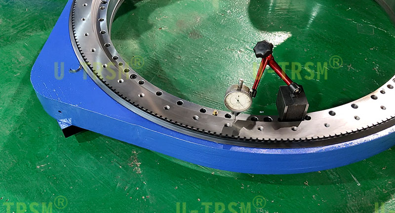 在生產(chǎn)過程中把回轉(zhuǎn)支承的齒跳控制在0.05mm以內(nèi),小齒輪齒跳控制在0.03mm以內(nèi),保證齒跳是保證齒間隙的前提,加工完成后,裝配調(diào)試同等重要,精密產(chǎn)品需要經(jīng)過反復(fù)的調(diào)試檢測,直到產(chǎn)品滿足客戶的要求為止。