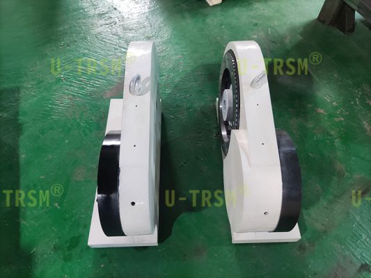 根據(jù)客戶的這些要求,不二傳動的工程師設(shè)計了這一款帶底座豎直安裝使用的齒輪式回轉(zhuǎn)驅(qū)動,滿足了客戶的使用要求。兩個齒輪式回轉(zhuǎn)驅(qū)動電機安裝方向相反,一個同向安裝,一個反向安裝,同向安裝的回轉(zhuǎn)驅(qū)動密封的設(shè)計是難點,在不增加成本的前提下,不二傳動為客戶設(shè)計了特殊的密封方式,用最低的成本巧妙解決了密封問題。
