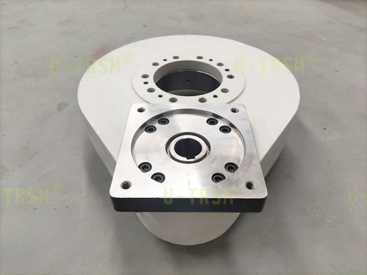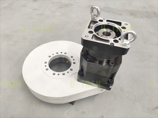 回轉驅動負責帶動四工位工作臺旋轉,到每個工位停止一段時間后,自動旋轉到下一工位,如此循環(huán)使用。工作臺旋轉的時候有較大的偏載,需要大的扭矩才能順利轉動工作臺。