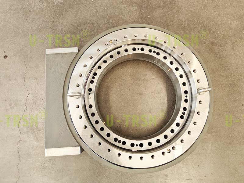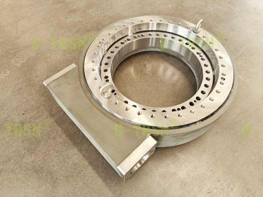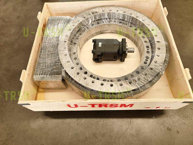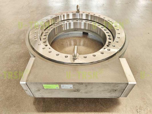 不二傳動(dòng)設(shè)備(洛陽(yáng))有限公司給客戶設(shè)計(jì)了一款大模數(shù),大扭矩,豎直安裝使用的蝸輪蝸桿式回轉(zhuǎn)驅(qū)動(dòng)。該回轉(zhuǎn)驅(qū)動(dòng)用在大型自動(dòng)化設(shè)備上,豎直安裝使用,載荷較大,并伴隨很大的傾覆力矩,回程旋轉(zhuǎn)時(shí)要求穩(wěn)定平順。經(jīng)過與客戶的多次溝通,不二傳動(dòng)的設(shè)計(jì)師根據(jù)客戶工況,推薦使用蝸輪蝸桿式回轉(zhuǎn)驅(qū)動(dòng),并使用大模數(shù)來(lái)增加回轉(zhuǎn)驅(qū)動(dòng)的扭矩,根據(jù)齒承載及力學(xué)性能分析,輸出扭矩可達(dá)近200KNm。