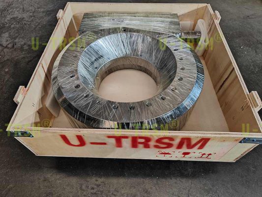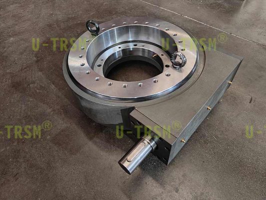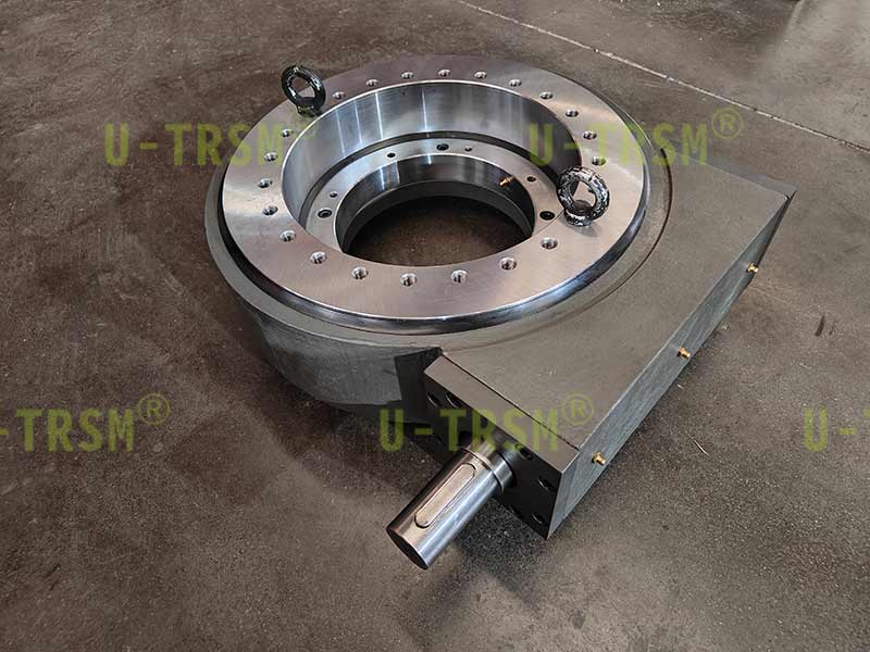 不二傳動(dòng)設(shè)備(洛陽)有限公司給客戶設(shè)計(jì)了一款大扭矩、高精度蝸輪蝸桿回轉(zhuǎn)驅(qū)動(dòng),應(yīng)用于大型自動(dòng)化包裝機(jī)械上,載荷較大,并且要求運(yùn)轉(zhuǎn)平穩(wěn),回程準(zhǔn)確。不二傳動(dòng)設(shè)計(jì)工程師根據(jù)客戶提供的工況,設(shè)計(jì)了此款回轉(zhuǎn)驅(qū)動(dòng),用大模數(shù)保證扭矩的輸出,其中回轉(zhuǎn)支承采用磨加工處理,保證溝道耐磨性及端面跳動(dòng),負(fù)游隙的設(shè)計(jì)使得回轉(zhuǎn)平穩(wěn),蝸桿采用特殊材料,蝸桿齒面淬火及磨齒處理,提高齒面的耐磨性及嚙合的精度。