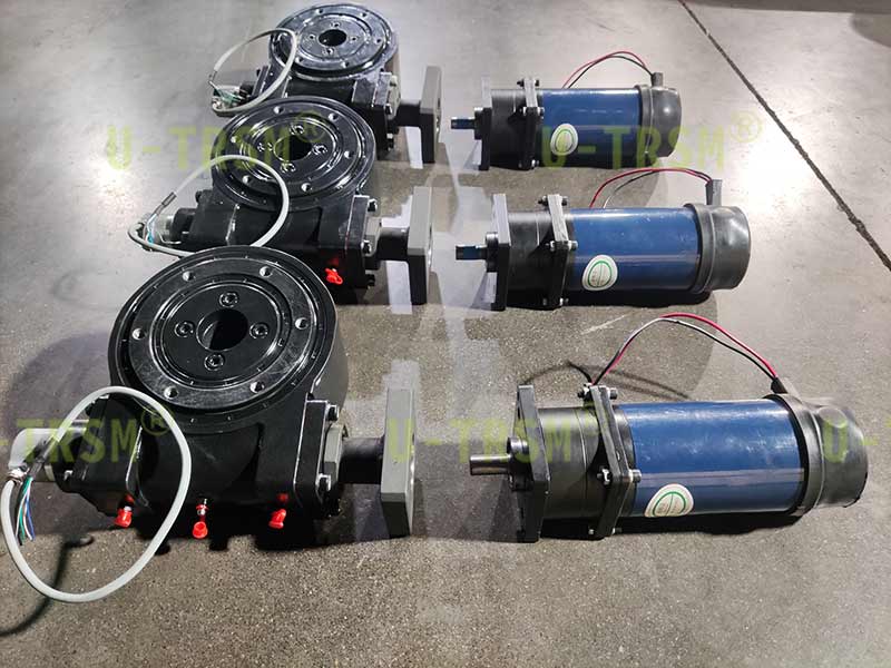 輸入端為客戶配套了減速機(jī)直流電機(jī),通過適配法蘭連接,電機(jī)和減速機(jī)性能參數(shù)前期選型的時(shí)候已經(jīng)完成計(jì)算。在設(shè)計(jì)初期,您只需要把要求告訴我們就行,選型計(jì)算,設(shè)計(jì)適配,生產(chǎn)檢測這些都是我們擅長的,您只管提要求,剩下的交給不二傳動(dòng)。