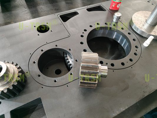 經(jīng)過(guò)與客戶的不斷溝通,反復(fù)進(jìn)行3D設(shè)計(jì)模擬實(shí)驗(yàn),不二傳動(dòng)給客戶研發(fā)了此款回轉(zhuǎn)驅(qū)動(dòng)。雙齒輪的設(shè)計(jì),一個(gè)為動(dòng)力齒輪,另一個(gè)齒輪從動(dòng)配合編碼器精準(zhǔn)反饋旋轉(zhuǎn)角度。此款回轉(zhuǎn)驅(qū)動(dòng)齒輪達(dá)到6級(jí),使得回程間隙極大的減小,達(dá)到客戶的使用要求,并且集成于底座,集成化的設(shè)計(jì)在加工方面可以使得回轉(zhuǎn)驅(qū)動(dòng)整體更為方便簡(jiǎn)潔。