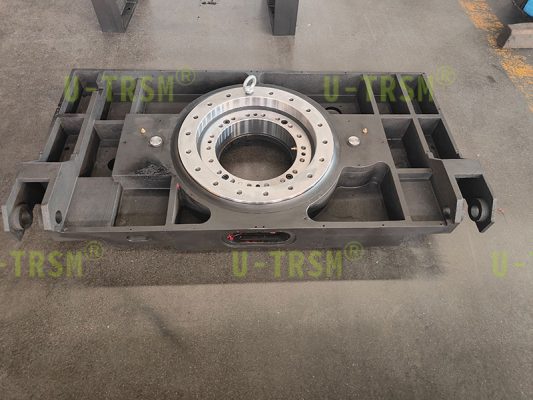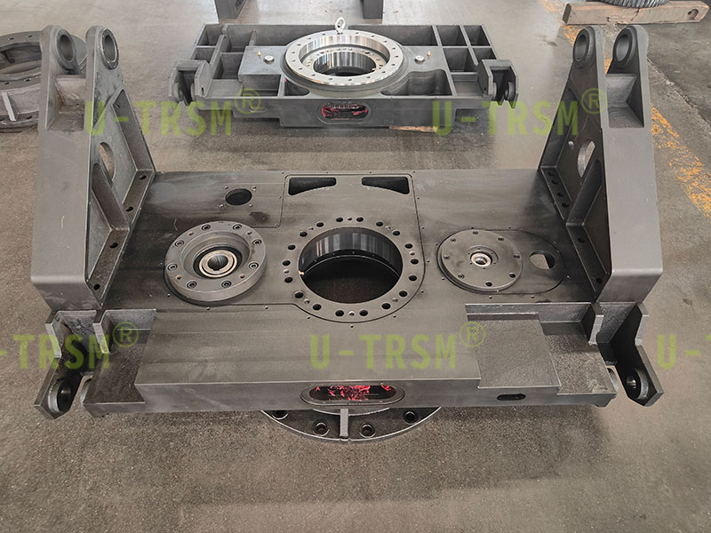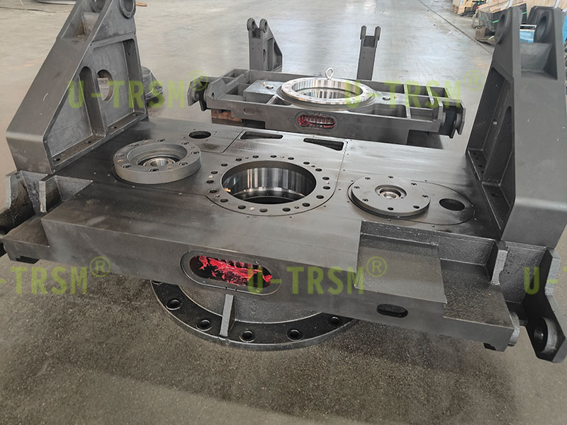 此款回轉(zhuǎn)驅(qū)動(dòng)應(yīng)用在自動(dòng)化旋轉(zhuǎn)平臺(tái)設(shè)備中,兩側(cè)支臂孔與平臺(tái)孔成角度,用于連接舉升設(shè)備使用,此驅(qū)動(dòng)與平臺(tái)集成一體化設(shè)計(jì),節(jié)省設(shè)備安裝空間,避免過(guò)多的安裝配合造成的誤差累計(jì)增加。