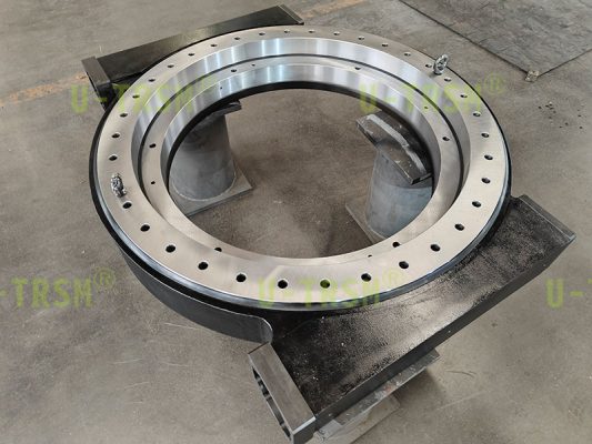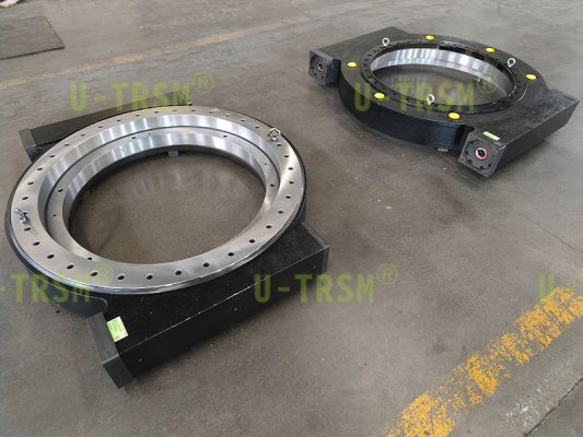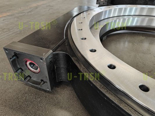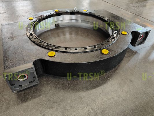 此款回轉(zhuǎn)驅(qū)動(dòng)應(yīng)用于高原低溫環(huán)境中,載荷大,扭矩大,使用環(huán)境在-40-50°C,并且要求高精度?;剞D(zhuǎn)驅(qū)動(dòng)中的回轉(zhuǎn)支承需進(jìn)行全磨加工,保證尺寸的精準(zhǔn),表面無任何劃傷,在零部件加工及搬運(yùn)過程中做保護(hù)處理。此款回轉(zhuǎn)驅(qū)動(dòng)輸出扭矩可達(dá)230kNm,保持力矩可達(dá)1400kNm,載荷可達(dá)350t,回程間隙≤0.05°,保證回轉(zhuǎn)驅(qū)動(dòng)的整體氣密性,采用加裝高質(zhì)量硅橡膠密封,不二傳動(dòng)設(shè)計(jì)工程師根據(jù)客戶的使用要求,研發(fā)了此款回轉(zhuǎn)驅(qū)動(dòng)。